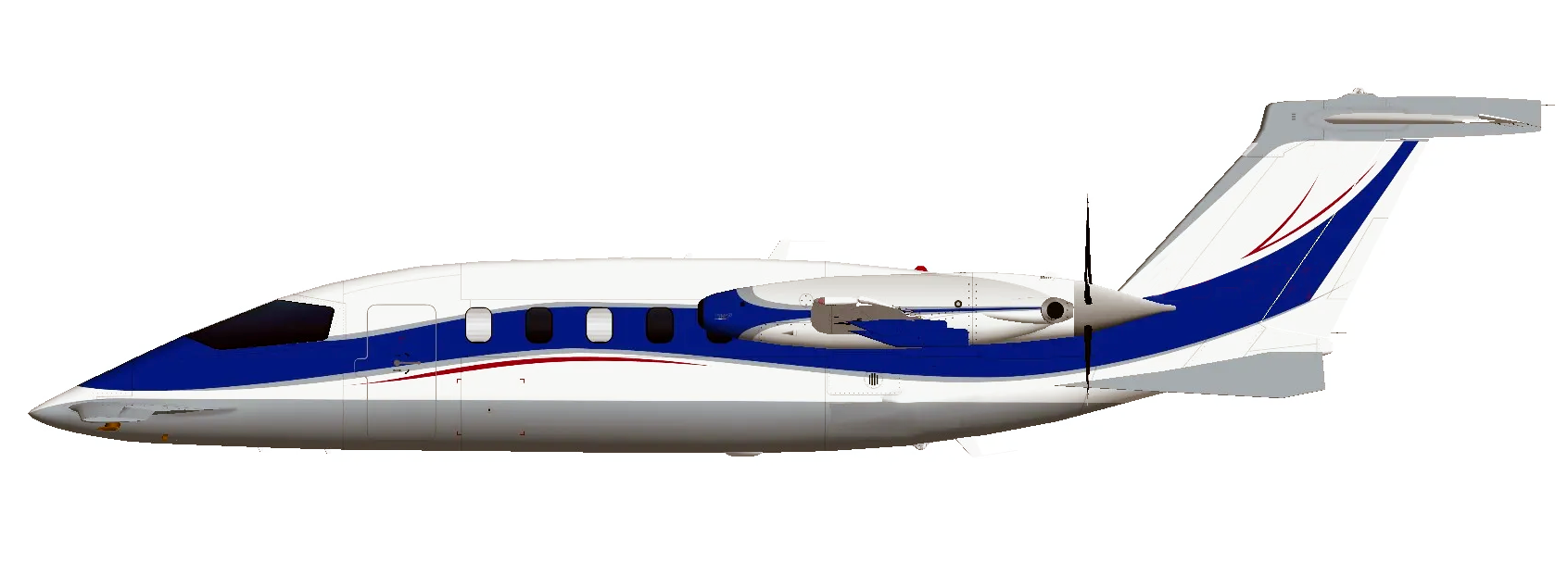 Overall White with Blue Fuselage Band & Red Accent Stripes